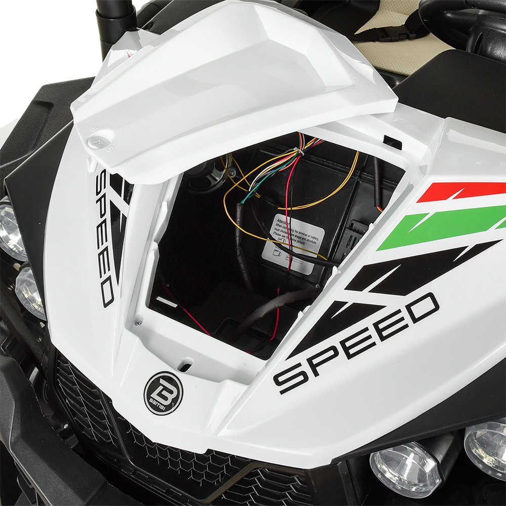 Спортивный руль, двери открываются и закрытваются, хромированные элементы (корпус, колеса), багажник для вещей, лобовое стекло, место для номерного знака спереди и сзади.
