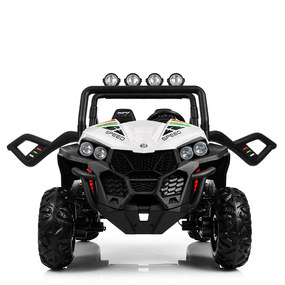 Спортивный руль, хромированные элементы (корпус, колеса), багажник для вещей, лобовое стекло, место для номерного знака спереди и сзади.