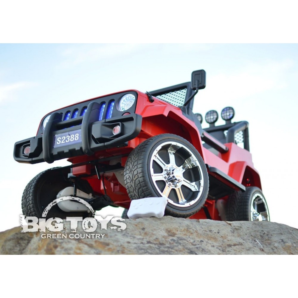 Заводится с ключа, есть функция экстренной остановки на пульте, усиленная рама, усиленное днище, зеркала заднего вида, лобовое стекло, фирменная упаковка, открывается капот, есть багажник в виде колеса.