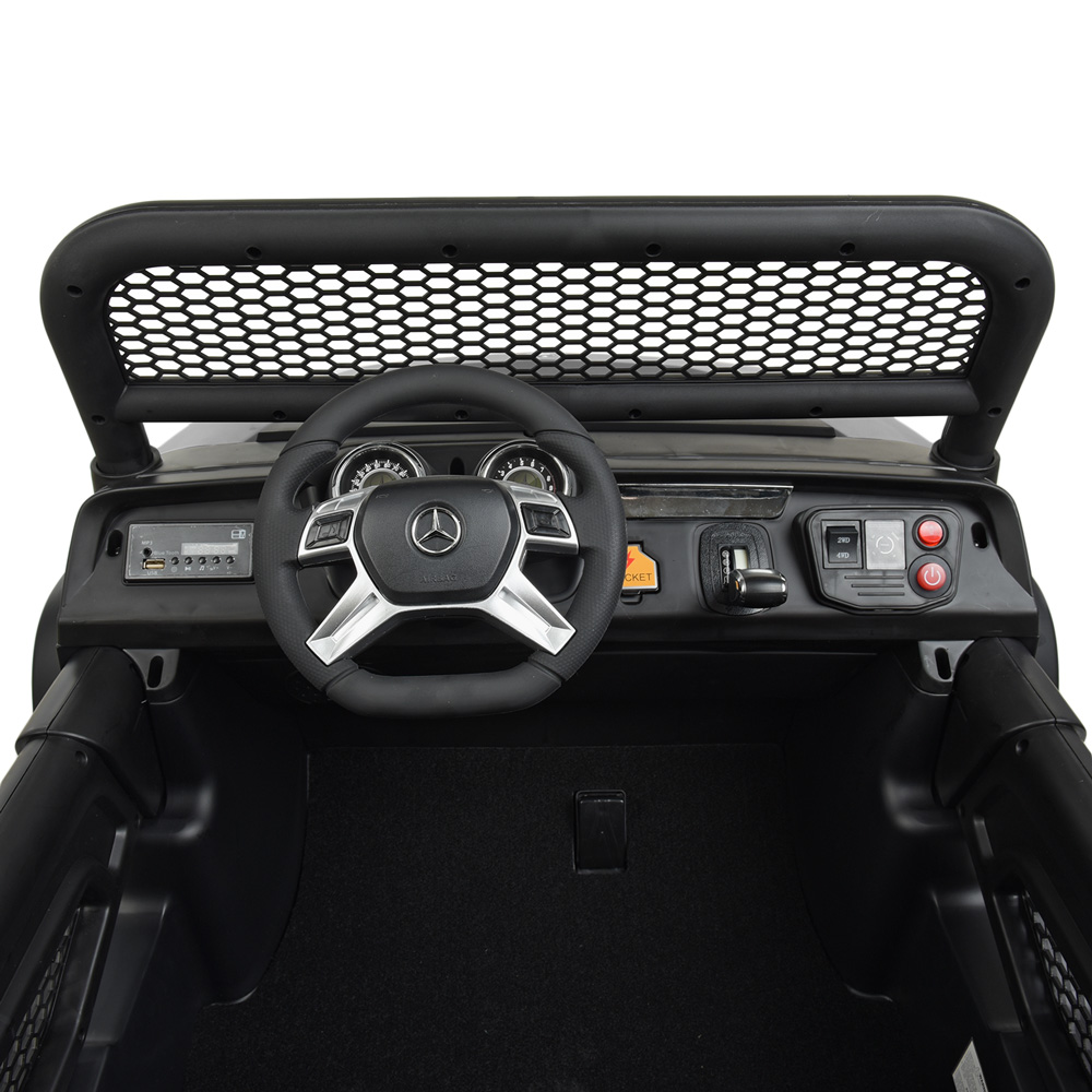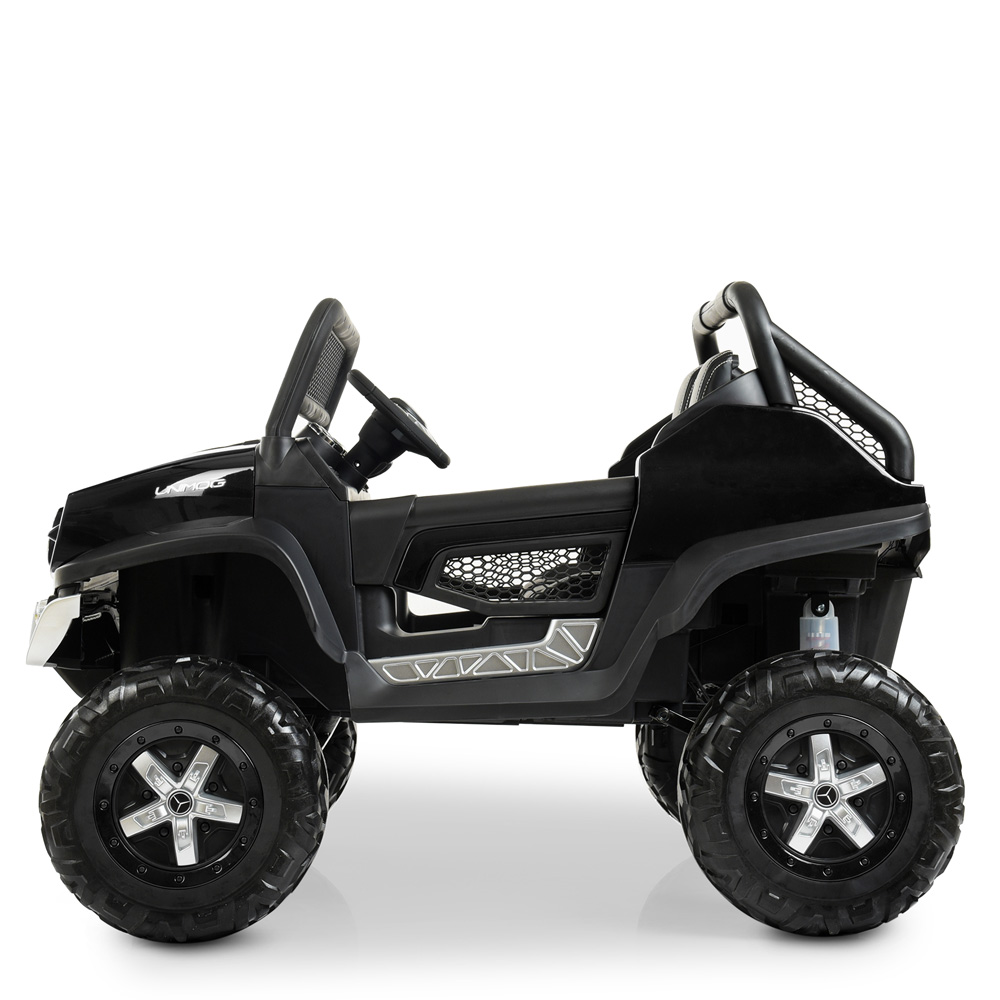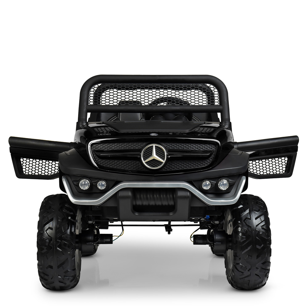 Есть функция экстренной остановки на пульте, 2 посадочных места, усиленная рама, усиленное днище, зеркала заднего вида, лобовое стекло, двери открываются, амортизаторы