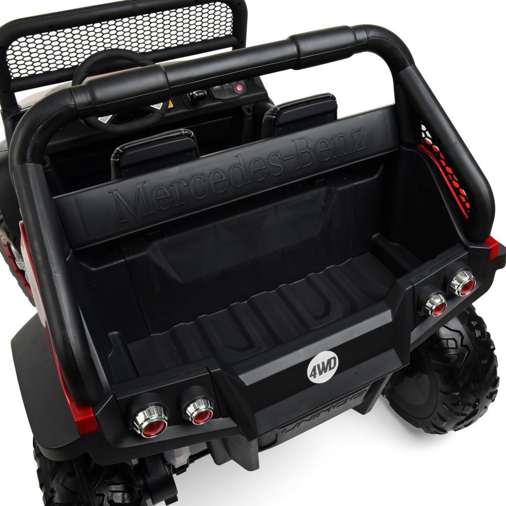 Есть функция экстренной остановки на пульте, 2 посадочных места, усиленная рама, усиленное днище, зеркала заднего вида, лобовое стекло, двери открываются, амортизаторы