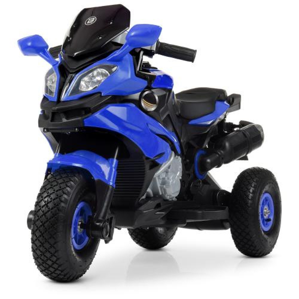 Металлический каркас двигателя (эмуляция), пластиковый корпус из каленного поли пропилена, заводится с ключа, есть музыкальная панель на батарейках, дополнительные страховочные колеса
