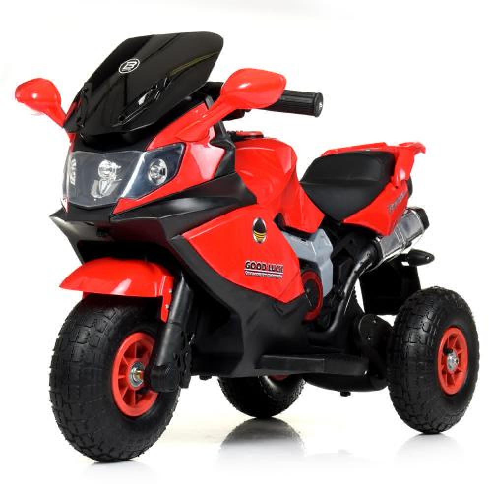 Металлический каркас двигателя (эмуляция), пластиковый корпус из каленного поли пропилена, заводится с ключа, есть музыкальная панель на батарейках, дополнительные страховочные колеса